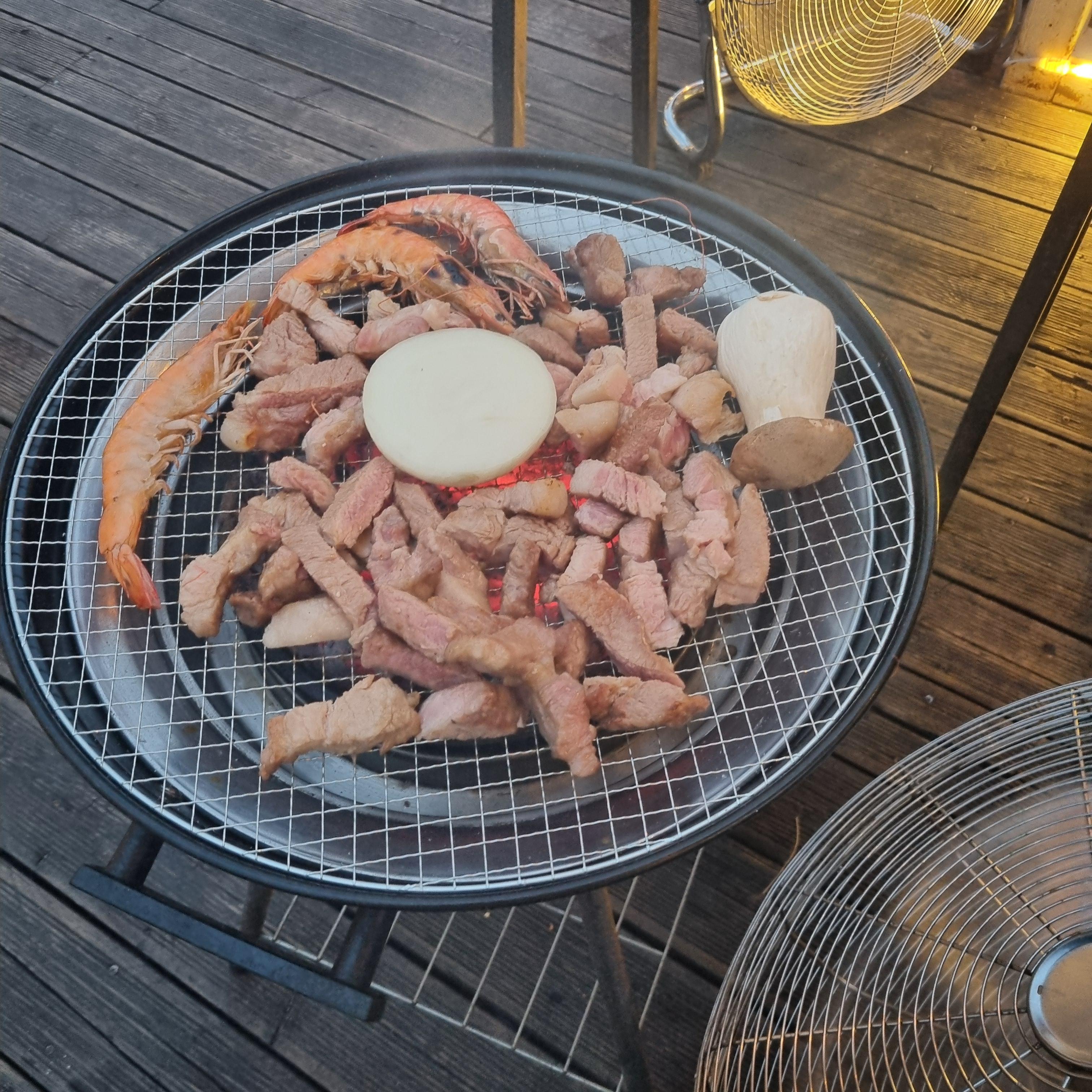 돼지고기 구이를 먹는 중