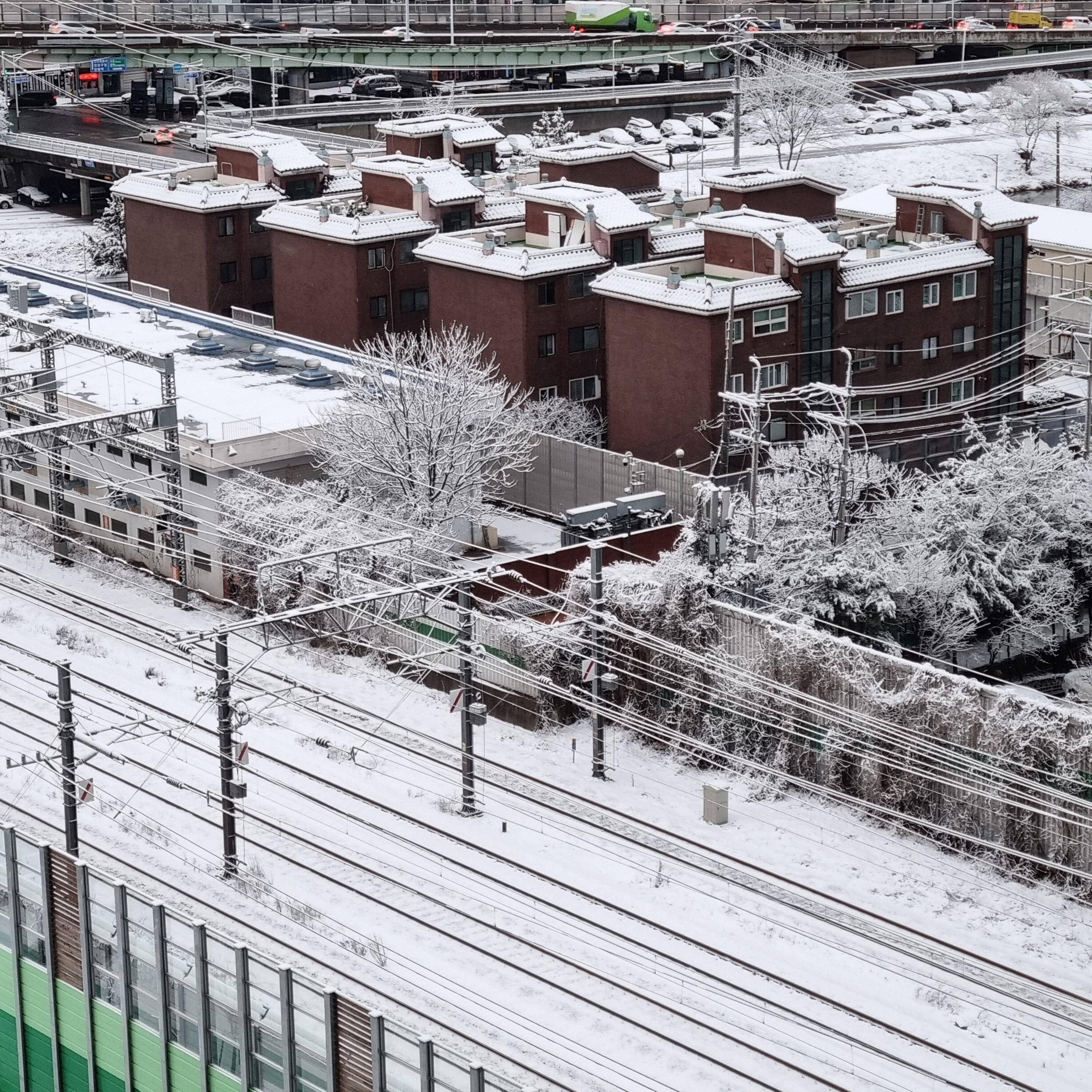 위는 24년 2월 2일 눈내리는 출근길 동영상, 아래는 2월 22일의 풍경