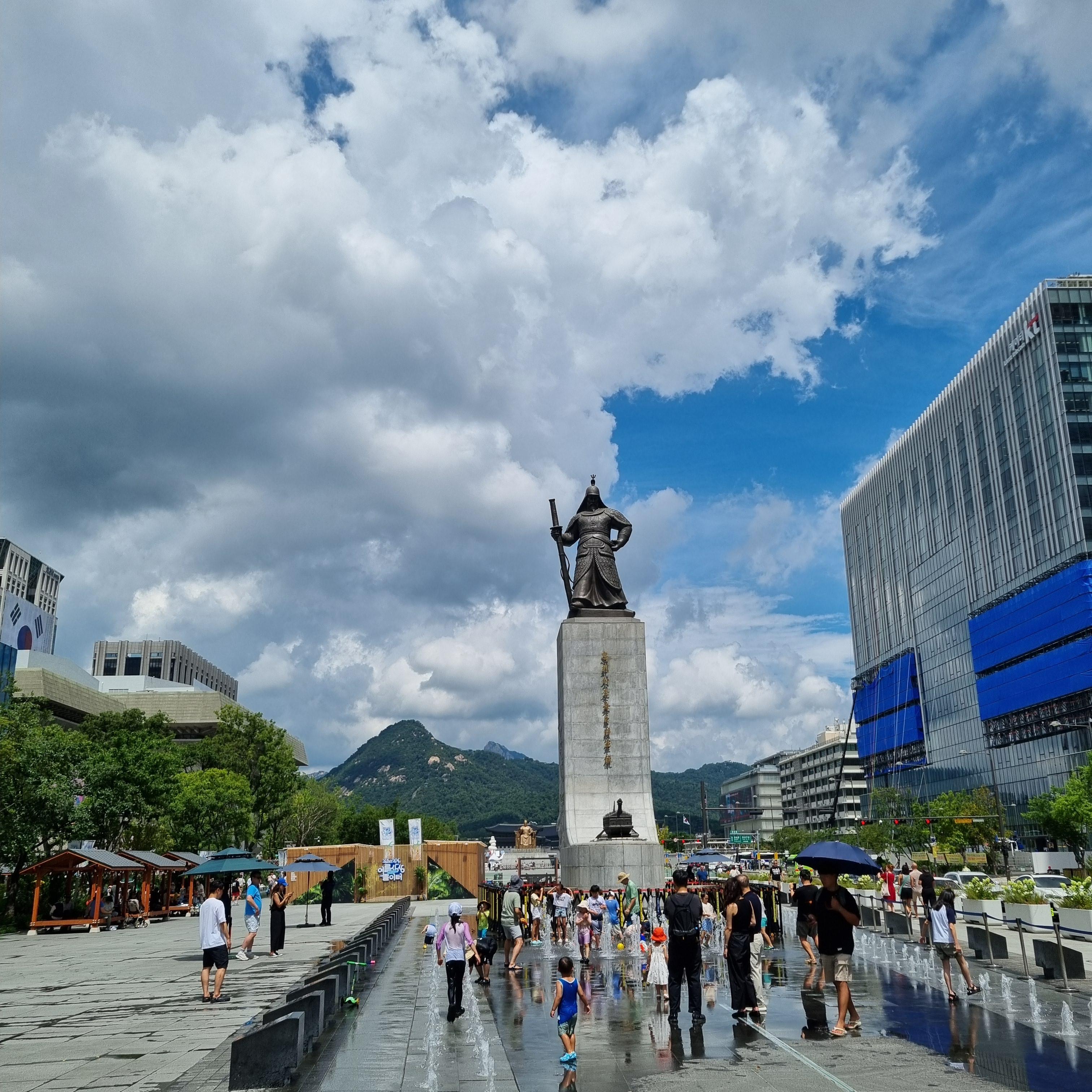 광화문광장 이순신장군 동상 앞에 분수가 마련되어 있는데