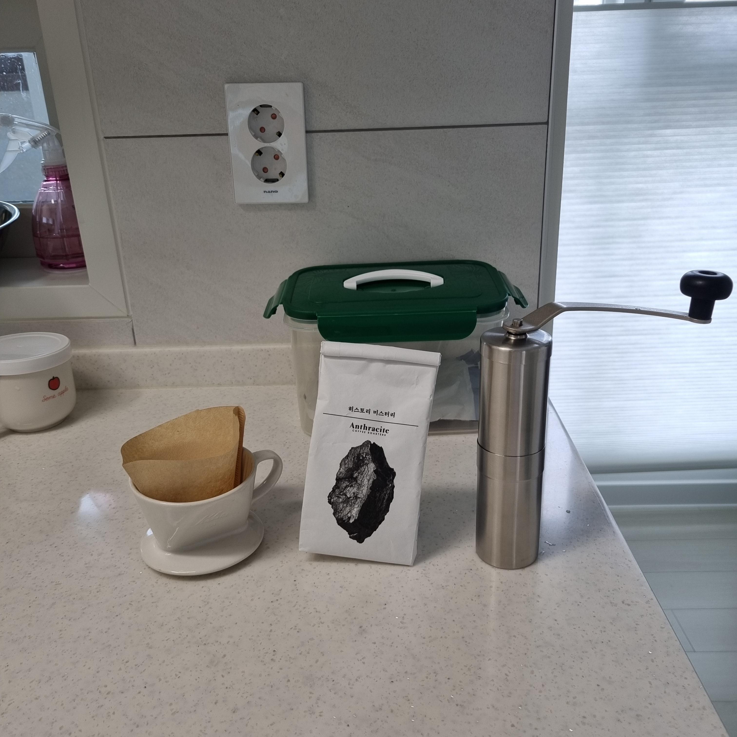 매일아침 흥겹게 원두커피를 핸드드립으로 내려 마셨다.